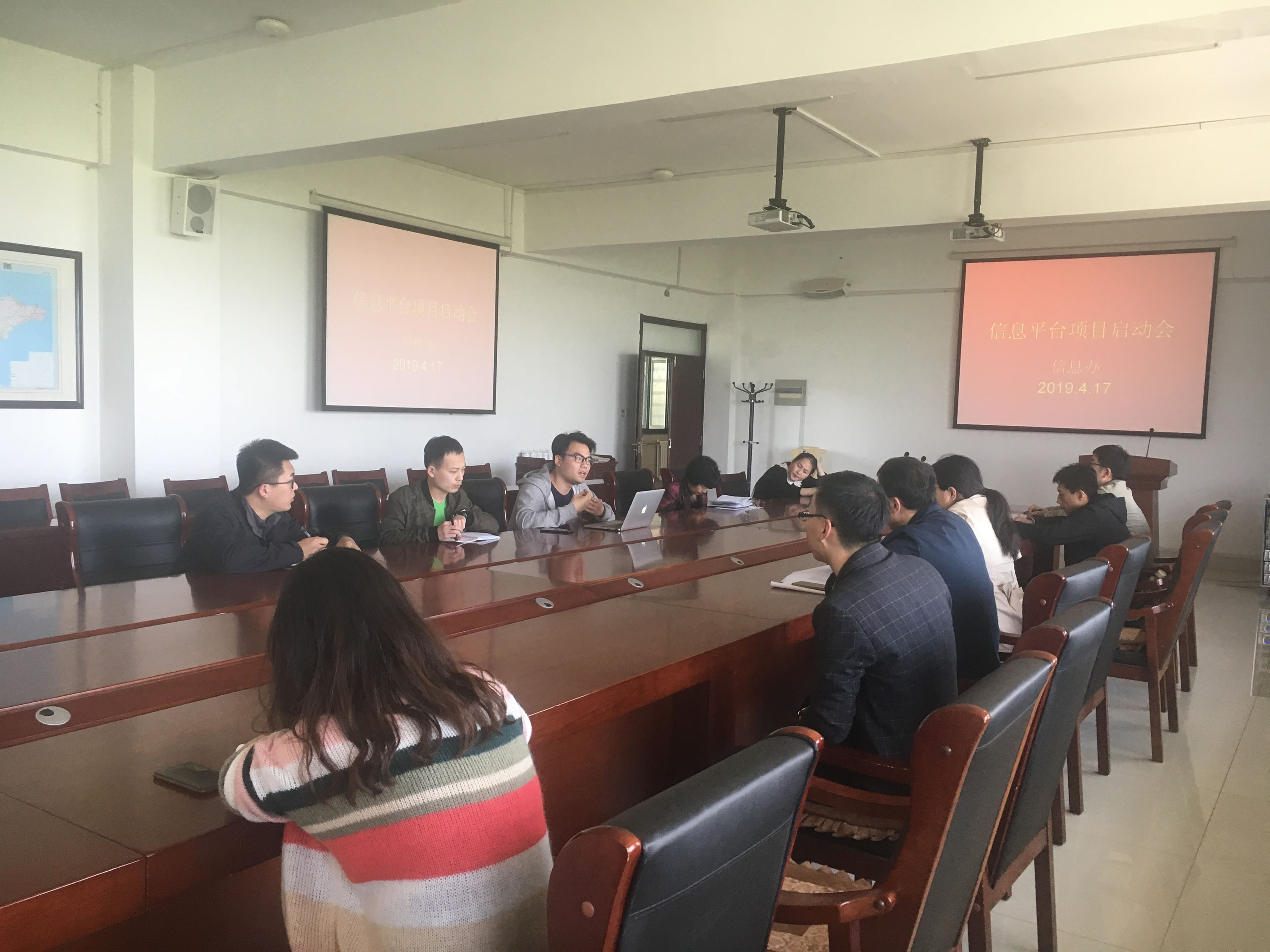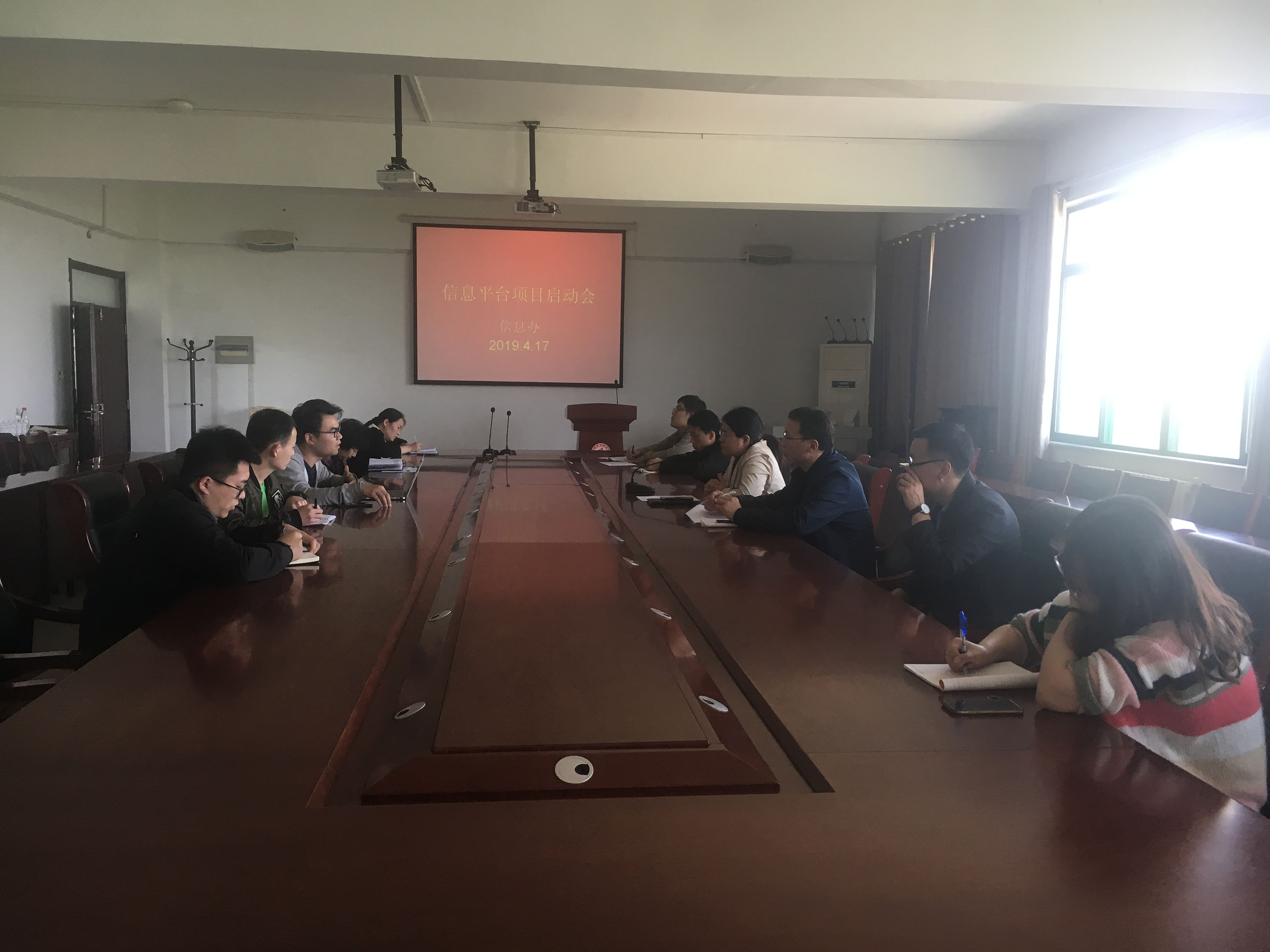 2019年4月17日下午14:00,在知新楼301会议室由信息办组织召开信息平台建设项目启动会,此次会议由学院院长助理车院助主持召开,联奕信息平台厂家,需要对接的各部门职能负责人参加会议。