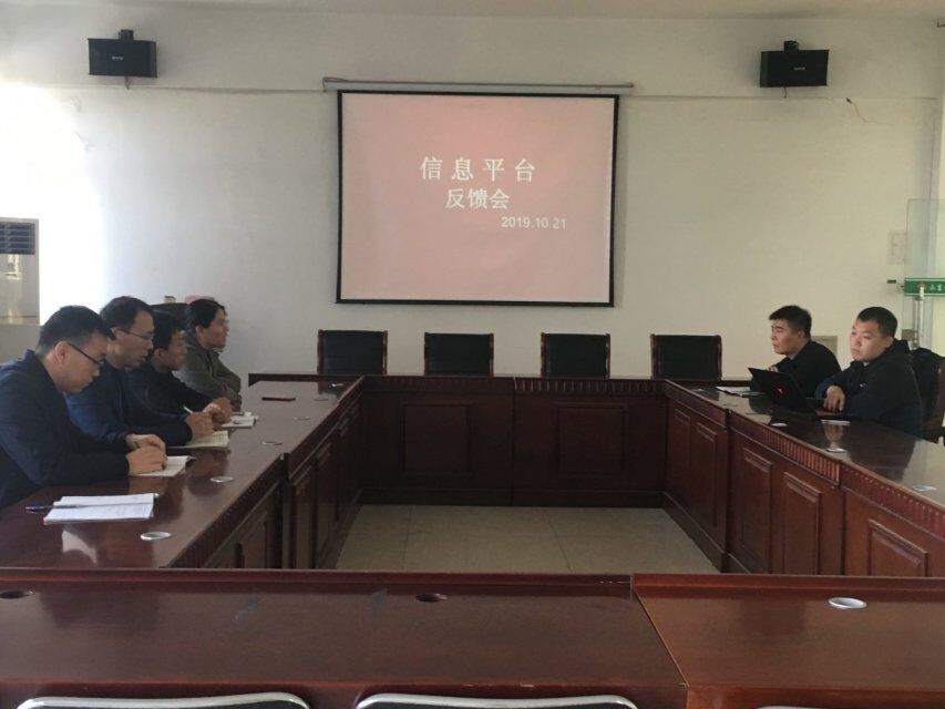 2019.10.21在知新楼204召开信息平台反馈会,车海燕、董福宪、杨云鹏、符国龙、联奕厂家技术人员(李凌然、魏圣财)参加会议。